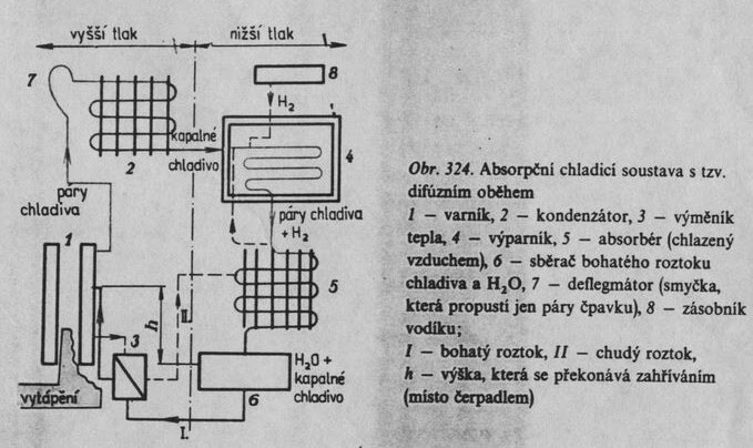 – absorpční chladící oběh – chladivo je pohlcováno do jiné látky a teplem je z ní vypuzováno do chladícího oběhu